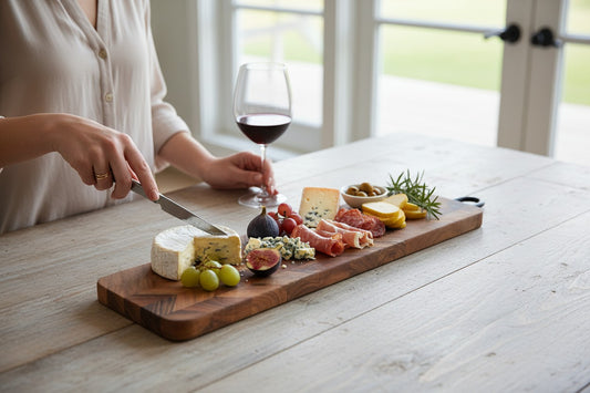 ACACIA WOOD 12" SQUARE CHEVRON BOARD WITH HANDLE