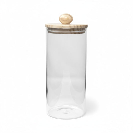 BOROSILICATE 33.8 OZ GLASS JAR W/ WOOD LID AND KNOB
