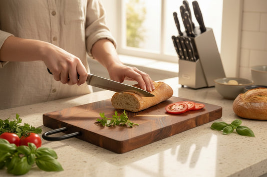 ACACIA WOOD 21" X 10.5" CUTTING BOARD WITH HANDLE