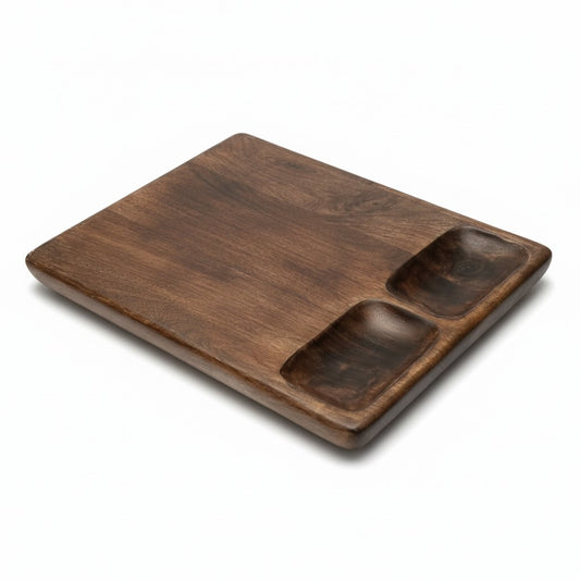 DARK MANGO WOOD 18" X 12" SERVING BOARD WITH 2 DIP BOWLS
